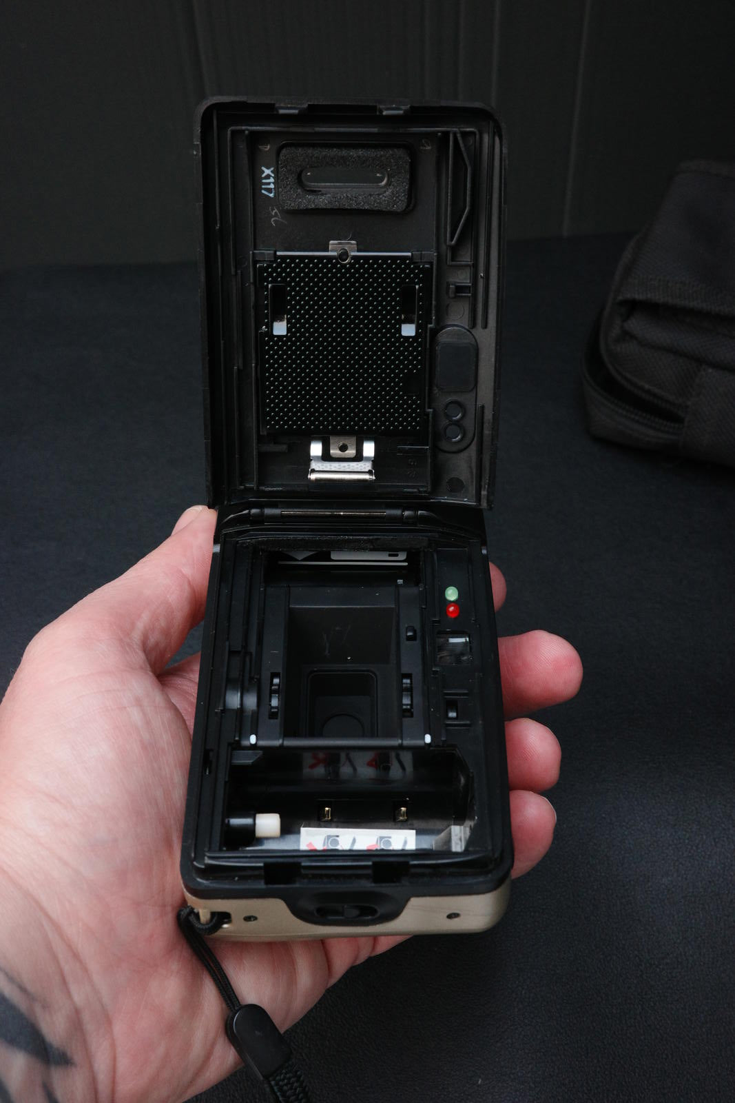 In very good vintage condition, has a few tiny marks, but nothing major (as you can see by the photos) Tested and fully working. Includes wrist strap and case. Does not include batteries or film.