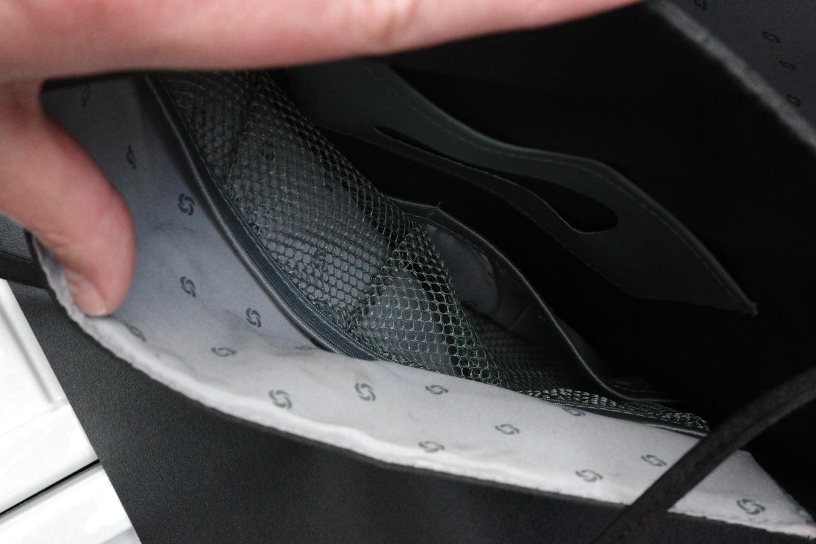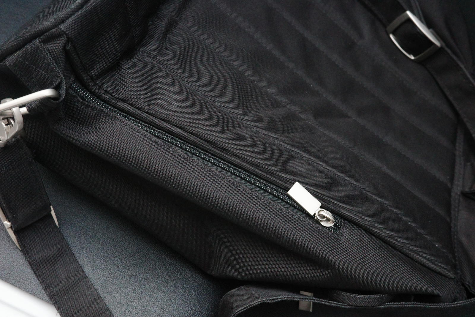 In good condition, no major marks. Several zipped pockets and front pocket opens completely flat.