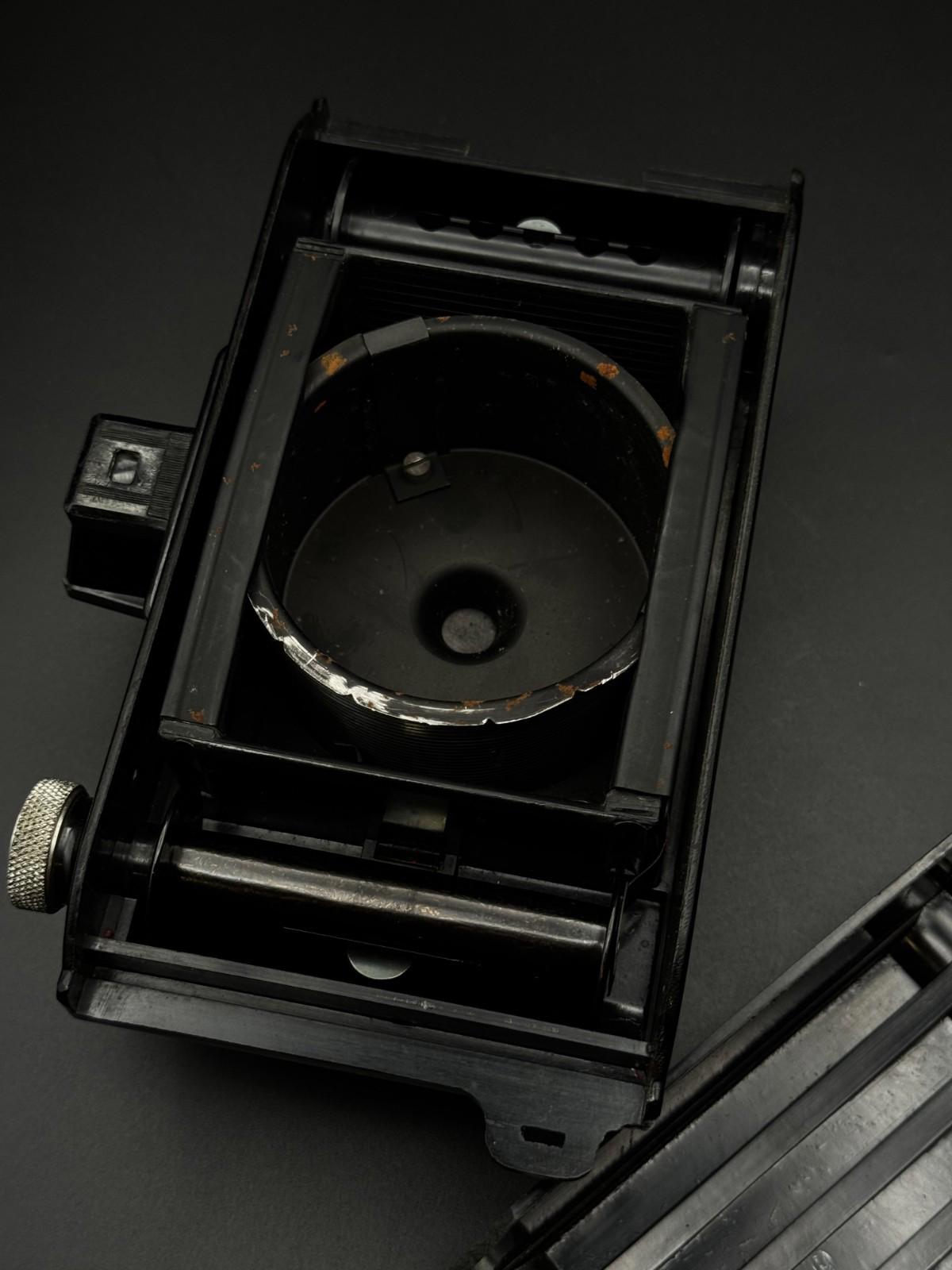 The Vintage AGFA Arti-Six London 20mm Film Camera is a medium format camera from the 1950s, featuring manual focus and a classic black colour. This camera, though rare, has been tested and confirmed to be in working condition, making it a unique find for film photography enthusiasts.