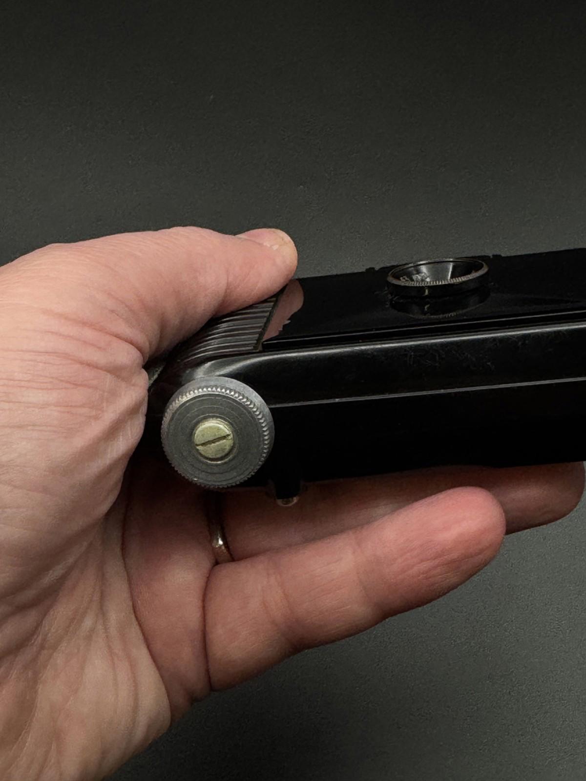 The Vintage Kodak Bantam Bakelite 828 Film Camera is a classic piece of photography equipment with a unique retro charm. This camera, made by the renowned brand Kodak, features a sleek black design and is specifically designed for 828 film format.
