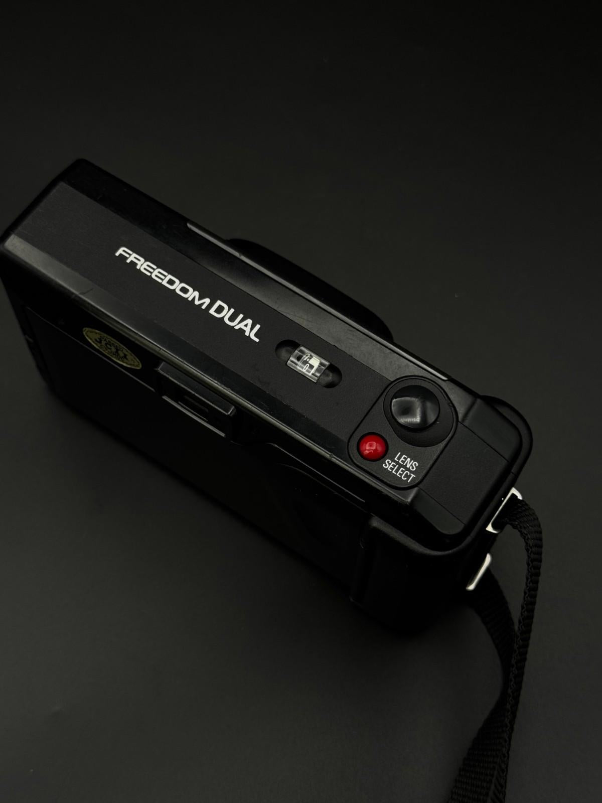 The Vintage Minolta Freedom Dual 35mm Film Camera is a classic black point-and-shoot camera from renowned brand Minolta. With its sleek design and automatic focus capabilities, this camera is perfect for capturing all your special moments with ease.