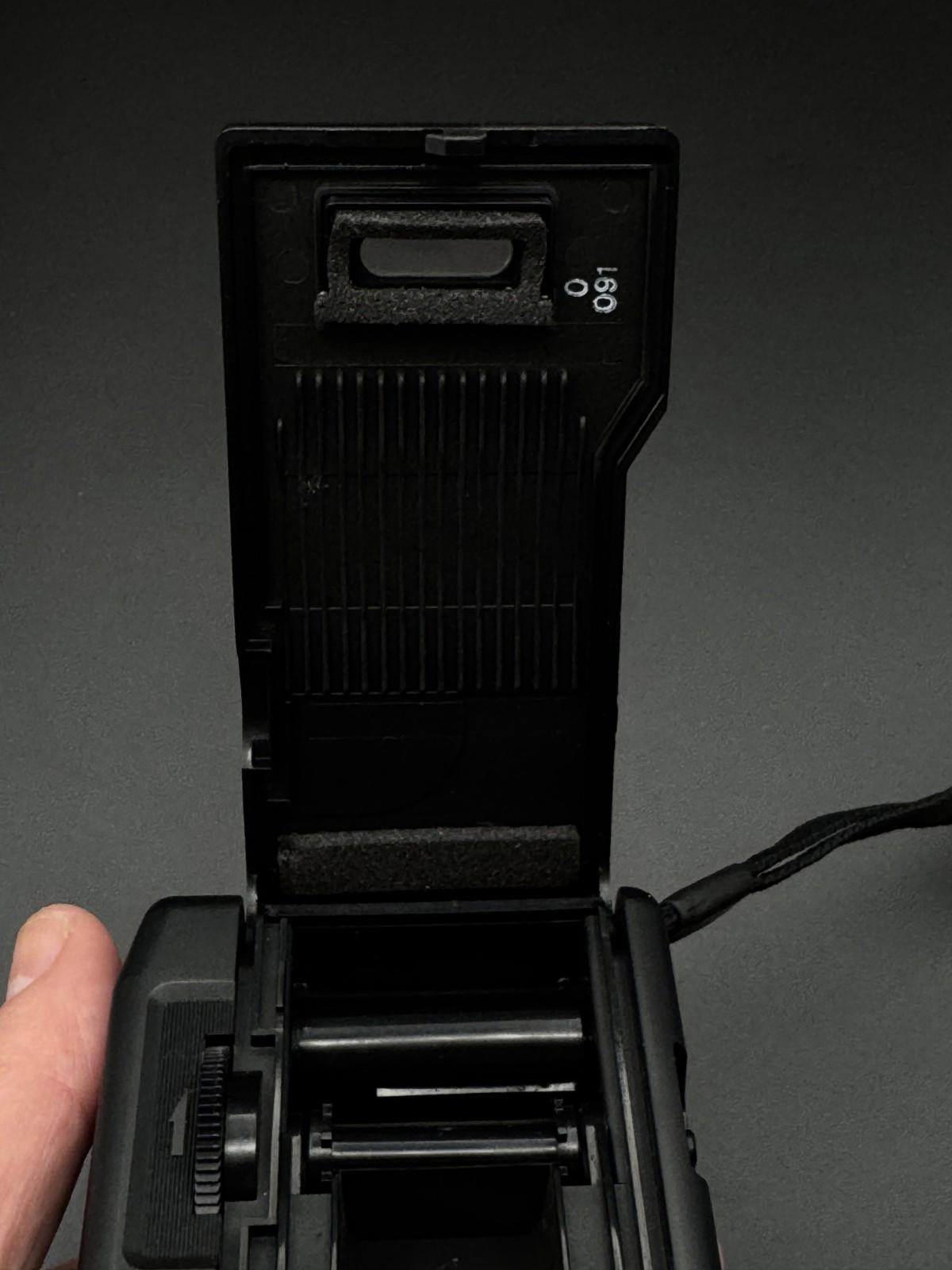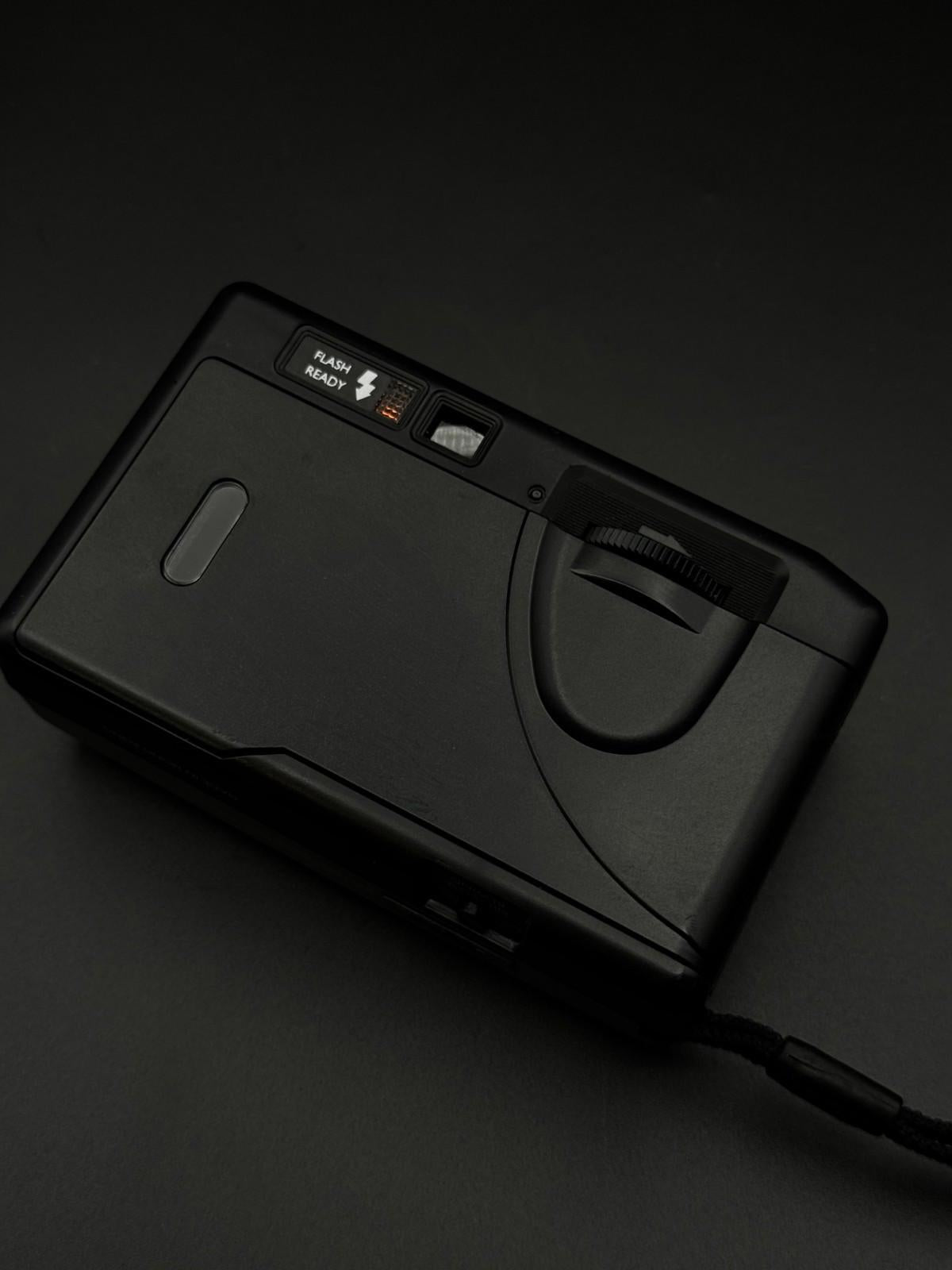 The camera features a built-in flash, making it versatile for various lighting conditions. Its sleek black colour adds a classic touch to its retro design, making it a stylish choice for capturing moments with a vintage twist.