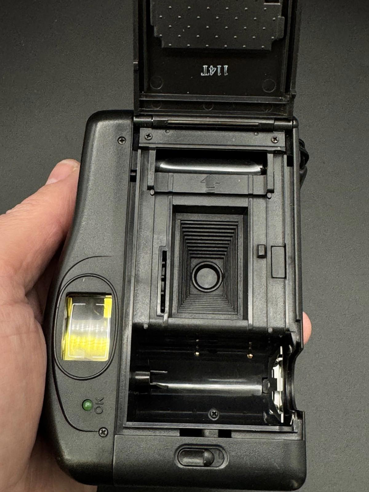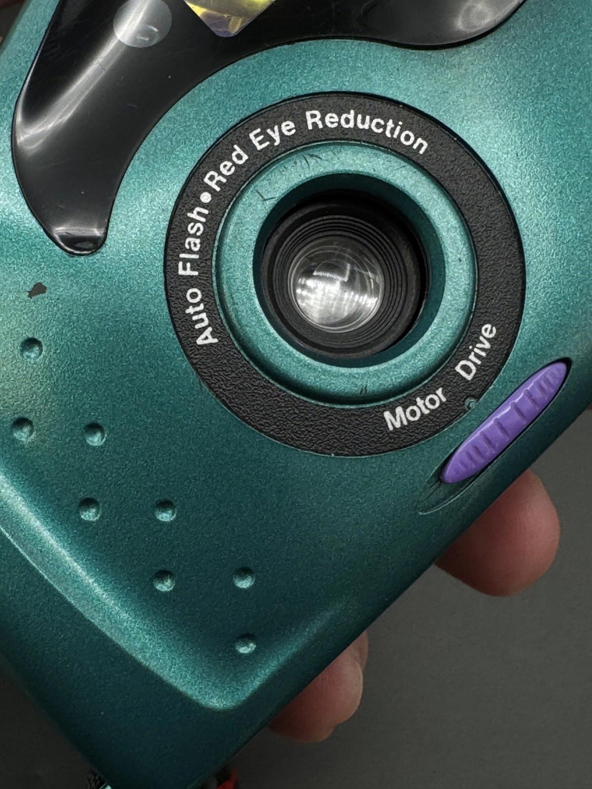This Vintage Turquoise/Green Boots Compact 35mm Film Camera is a rare find from the 1980s, featuring a unique turquoise colour with a built-in flash.